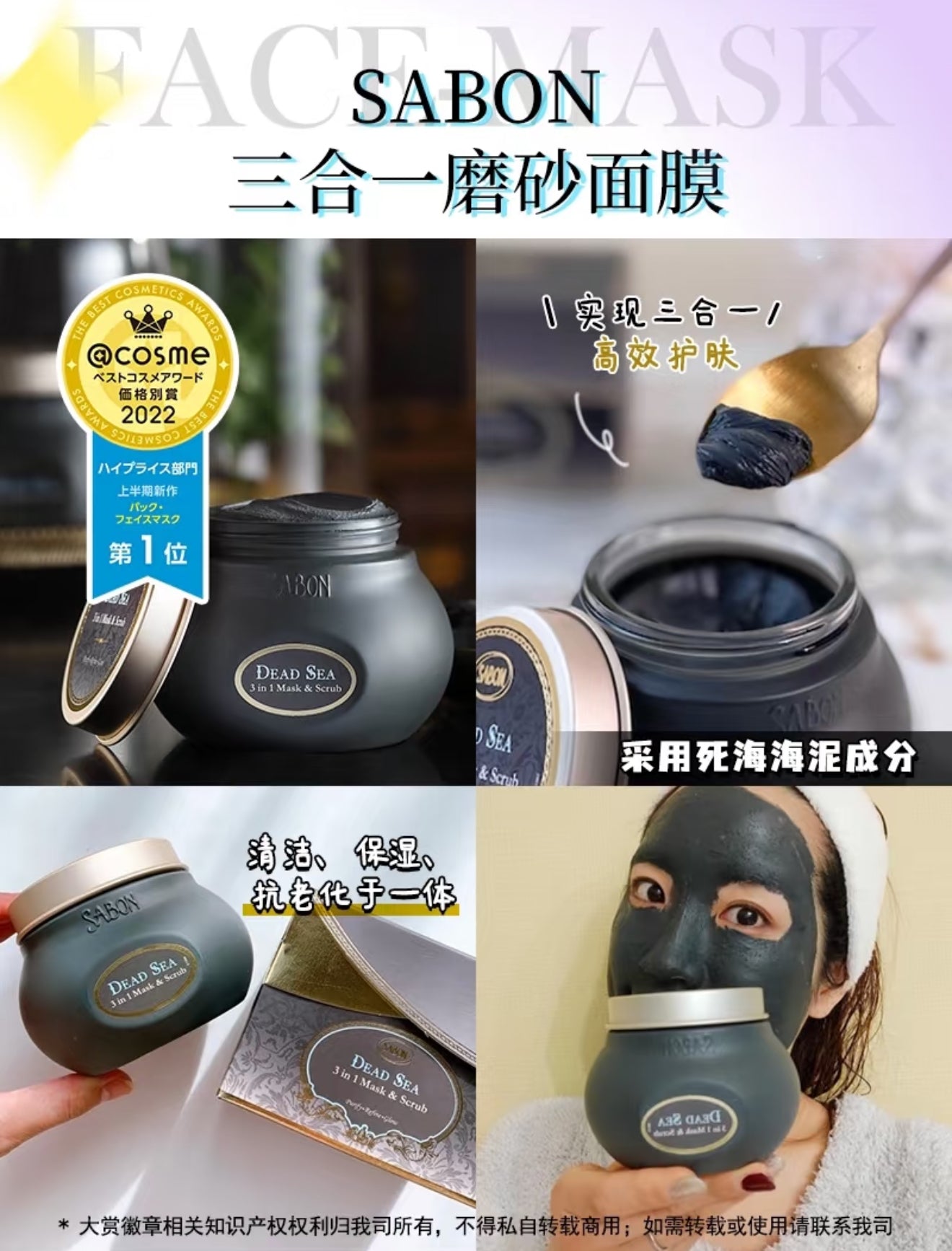 精选死海黑泥、死海水、藻类 & 多种矿物萃取,能迅速净化肌肤、提亮质感。