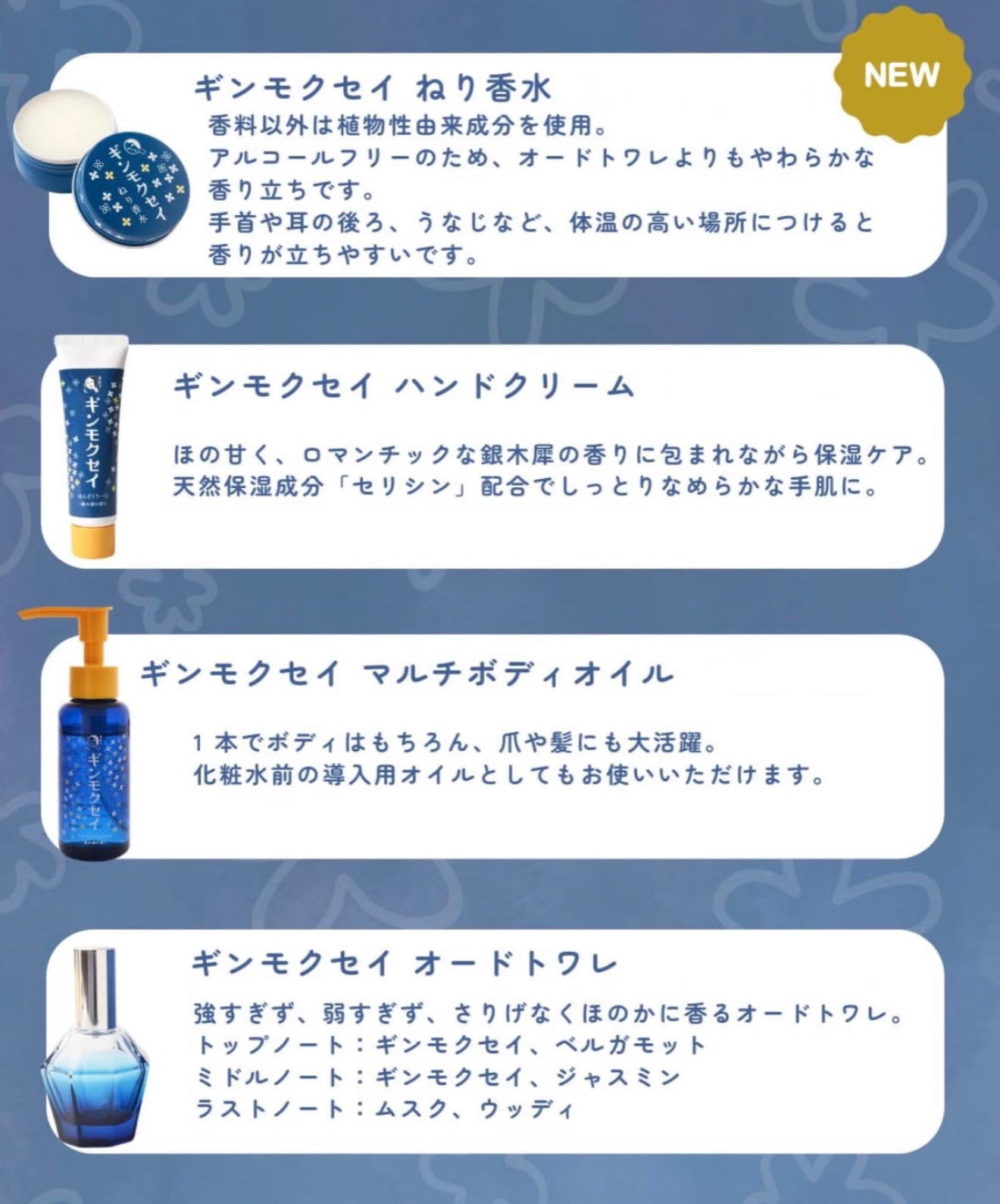 前调:柔和银木犀甜香 + 佛手柑点缀