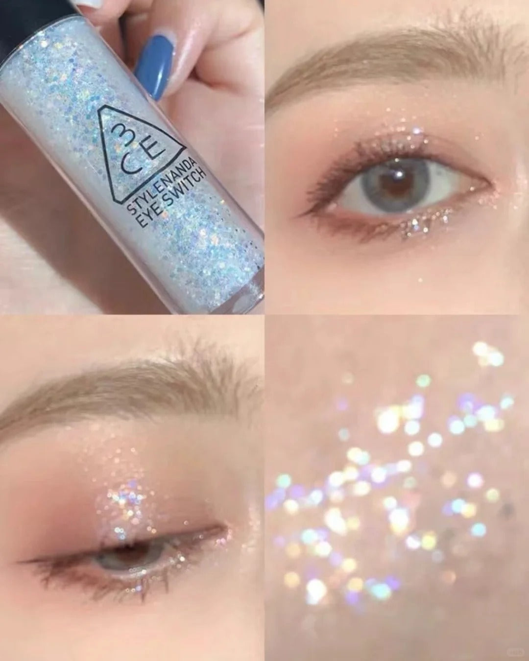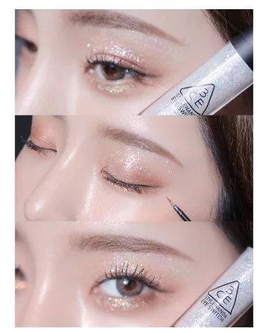 仙女泪光液体眼影✨ 女团同款,瞬间点亮眼神!这款液体眼影风靡韩国,水润轻薄不厚重,透明底色好上手。超细硅胶刷头精准上色,一刷即可均匀铺满眼皮,闪片均匀闪耀,定妆力强,带妆一整天都不掉。粉状闪片再也不必担心飞粉,小白也能轻松打造楚楚动人的泪眼妆感。添加维生素E和乳木果油,上妆同时保湿,卸妆也轻松不刺激。