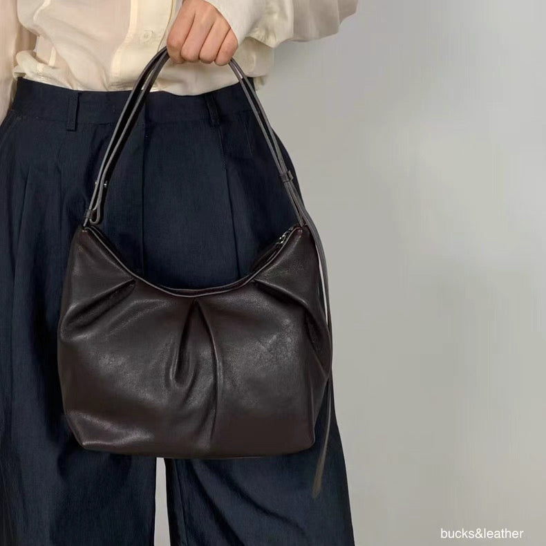 独特皱褶设计:柔和的褶皱线条,展现立体感与随性时髦。