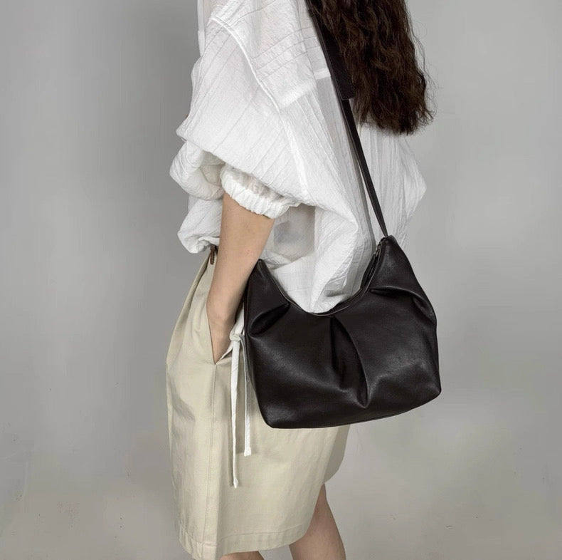 轻盈羊皮:材质柔软细腻,质感高级,背起来自然垂坠。