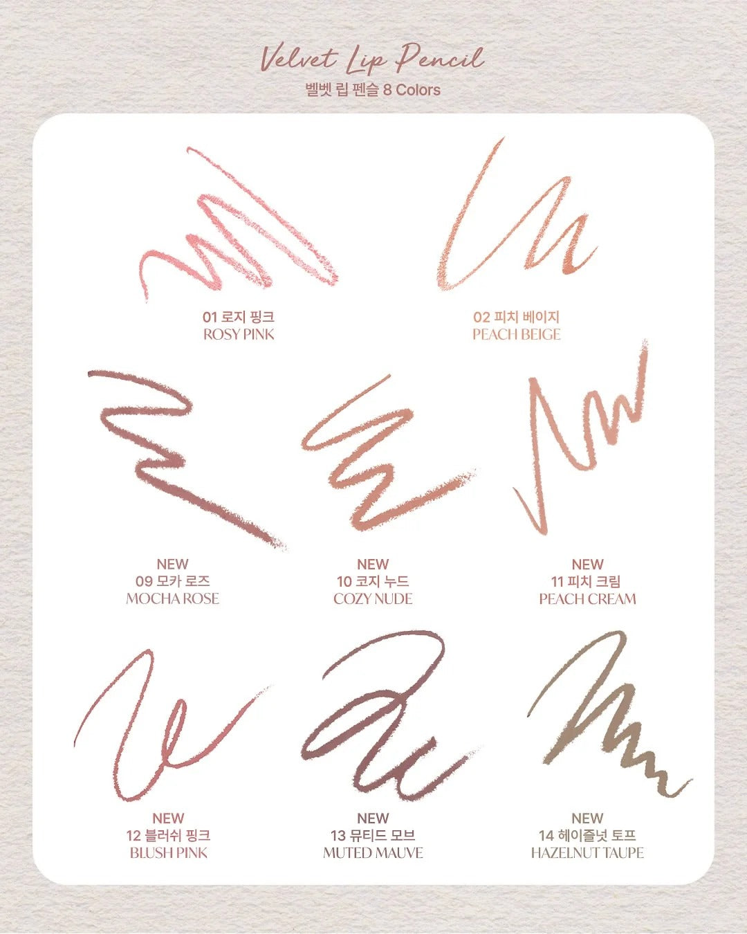 这款丝绒唇线笔结合唇线与口红双功效,质地轻盈顺滑、显色柔雾不拔干,能勾勒唇形、填色打底,让唇妆更立体、更持久。颜色从温柔玫瑰到深邃可可,满足不同风格与肤色需求 ~